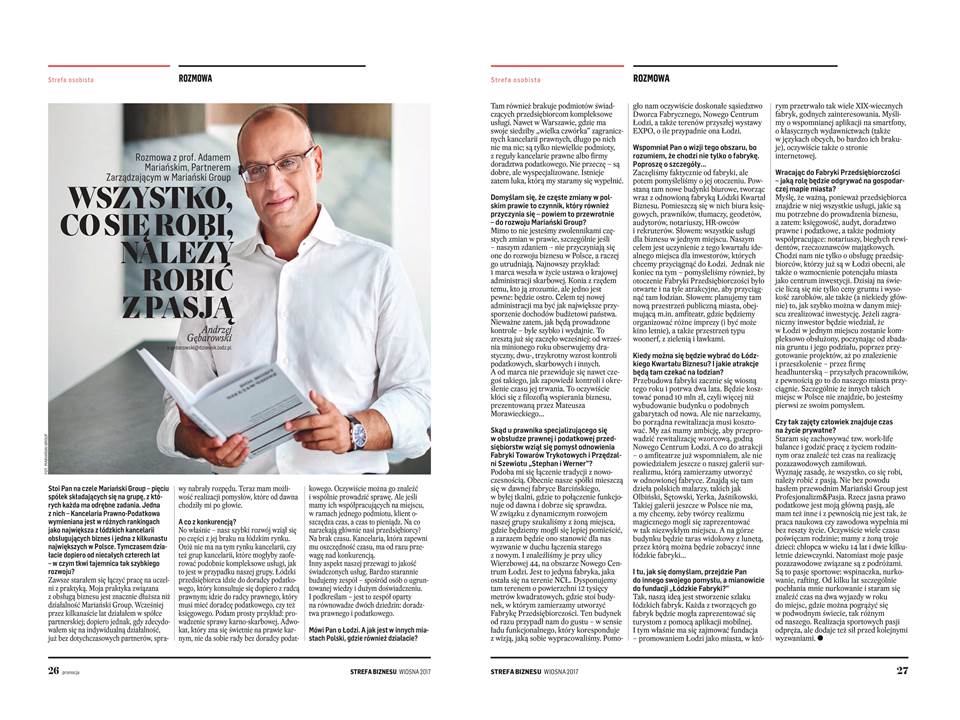 W wiosennym numerze magazynu „Strefa Biznesu” rozmowa z prof. Adamem Mariańskim o pasji, prawie, rozwoju Mariański Group i planach na przyszłość.